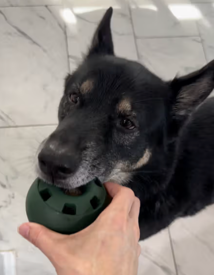 Der Naschball 2.0 ist aufschraubbar und easy zu reinigen. Aufmachen, abspülen, fertig. Füll ihn mit Joghurt oder Leberwurst, friere ihn ein und dein Hund ist 30+ Minuten beschäftigt.